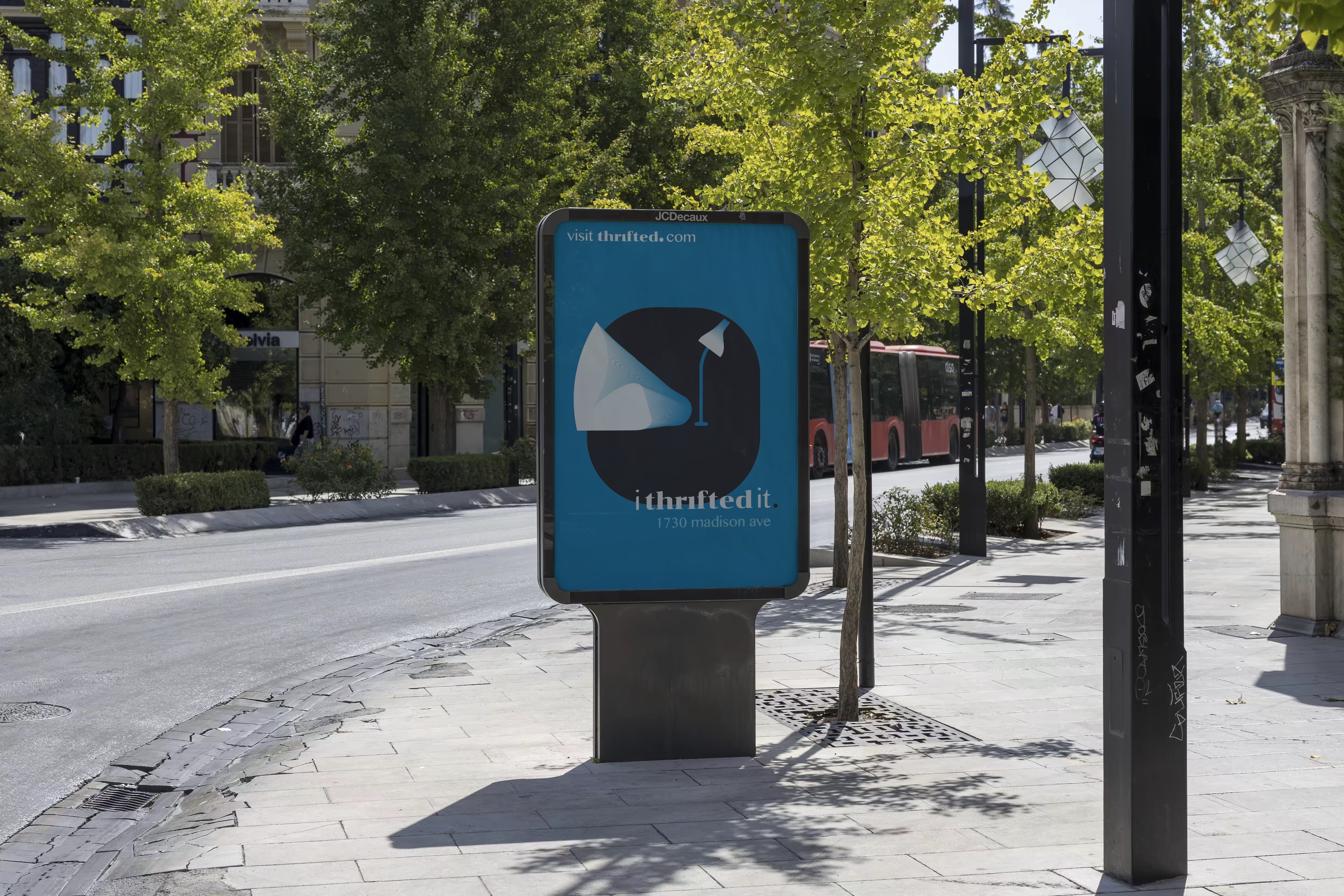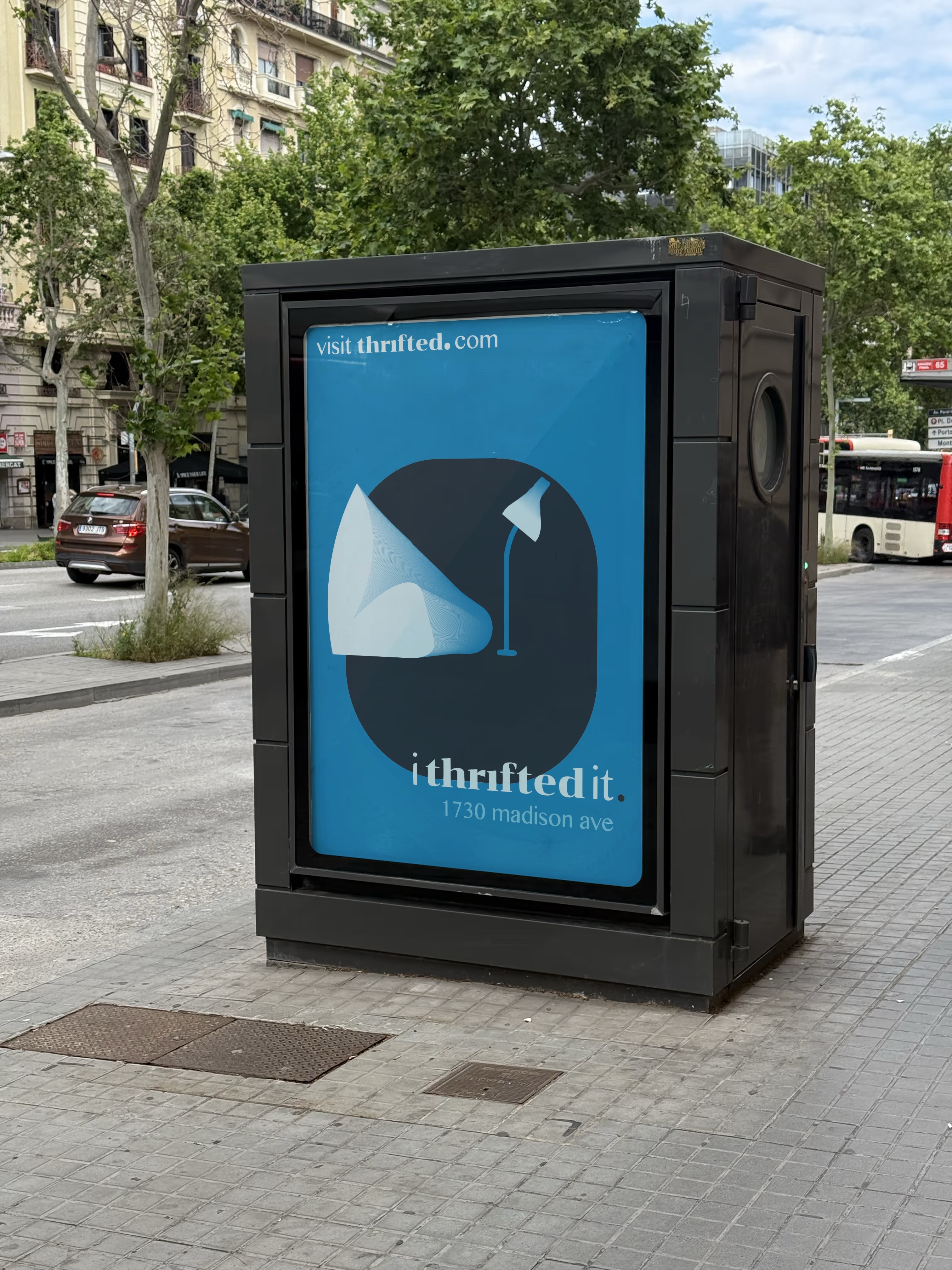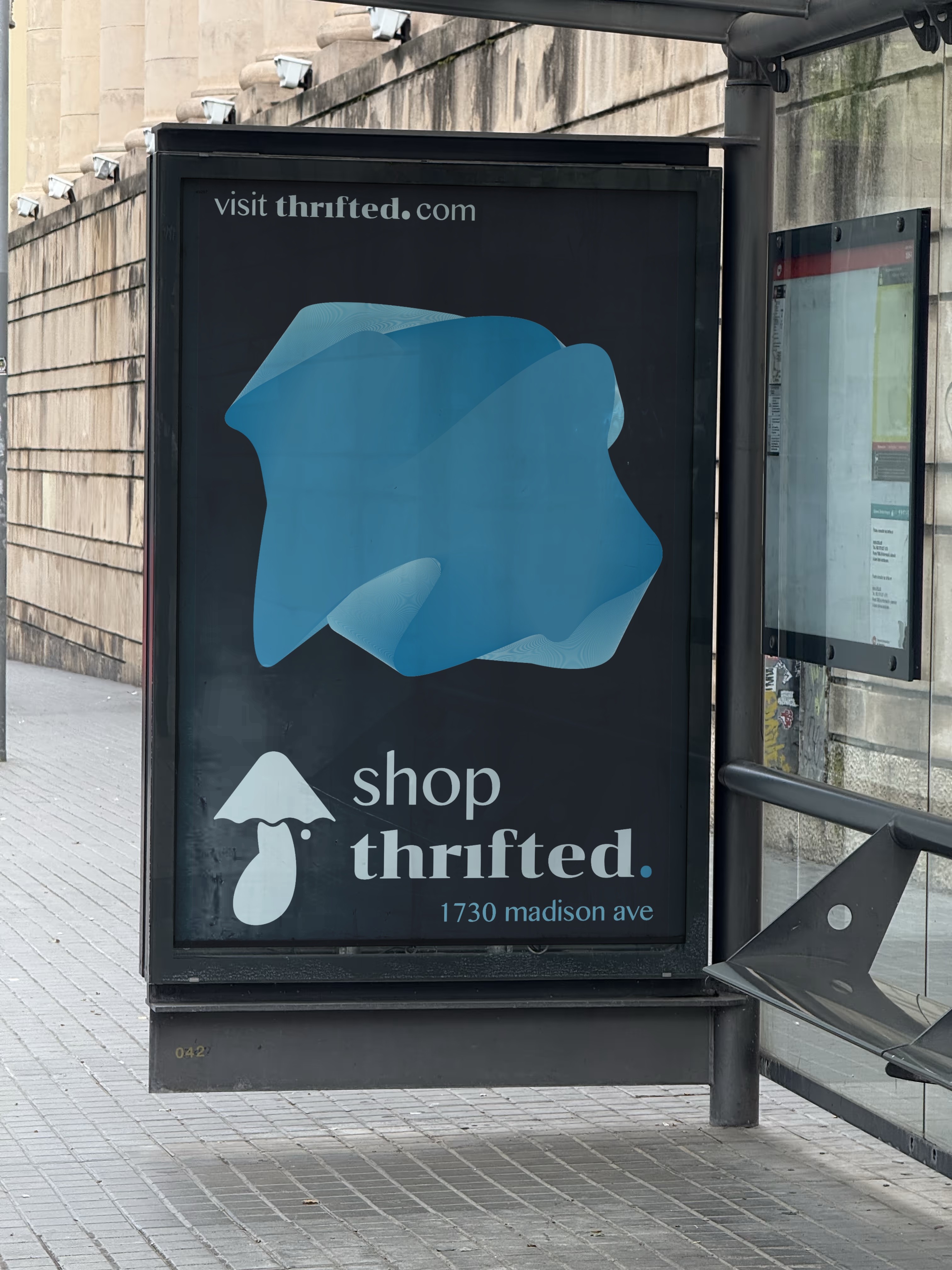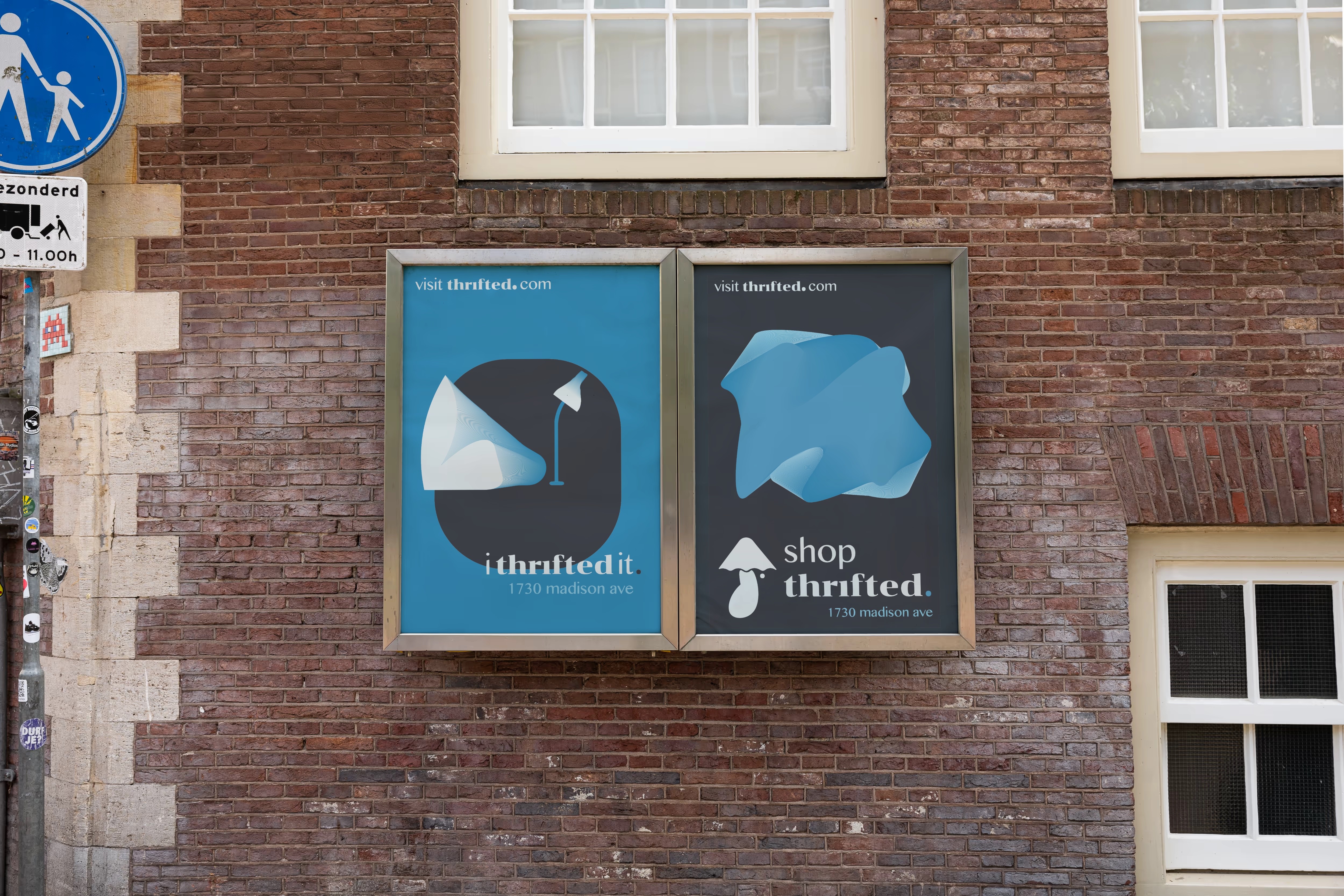 The logo combines the form of a mushroom with references to an umbrella and a lamp, symbolizing growth, protection, and illumination. This fluid shape reinforces the brand’s motif of sustainability, care, and thoughtful reuse, aligning visually with Thrifted’s values.